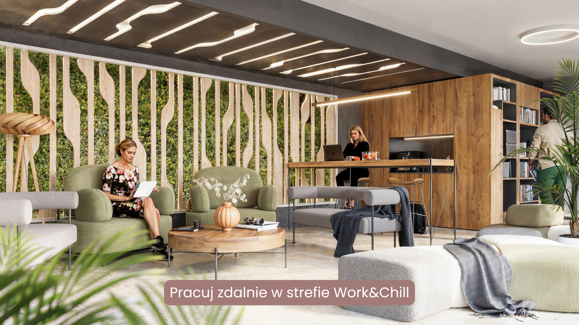 W budynkach zaprojektowano wielofunkcyjne lobby, podzielone na strefę work & chill. W tej pierwszej znajdziemy przestrzeń, dedykowaną do pracy zdalnej i spotkań online, także tych biznesowych. Zaś strefa chill zaprasza by w miłym towarzystwie, wygodnie rozgościć się przy bookcrossingu, napić się kawy w coffe corner lub skorzystać z eko poidełka #PijKranówkę.