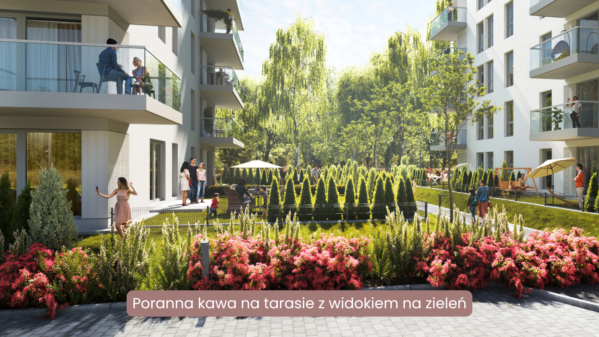 Tutaj otoczenie przestaje być jedynie tłem dla miejskiego życia – staje się jego integralną częścią. Osiedle stanowi impuls do różnorodnej aktywności i niewątpliwie wyróżnia się przestrzeniami wspólnymi, przygotowanymi z niezwykłą dbałością o detale.