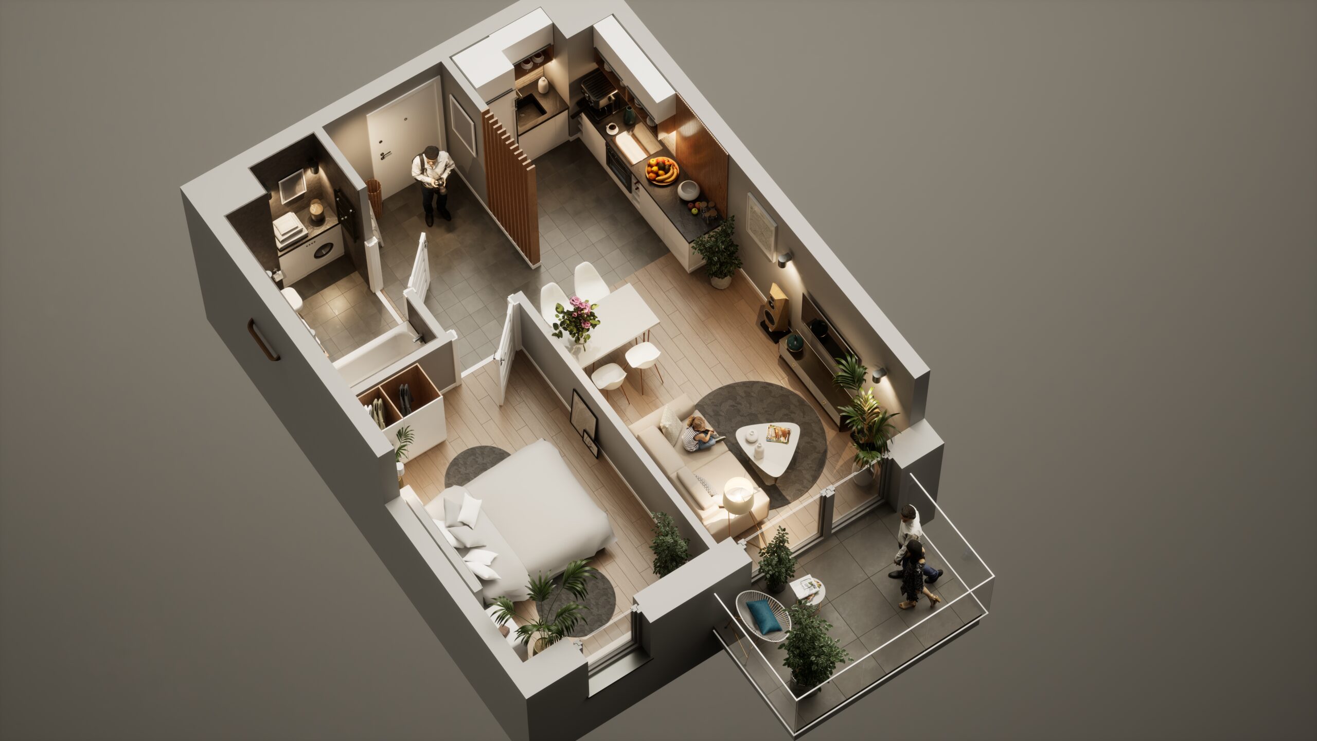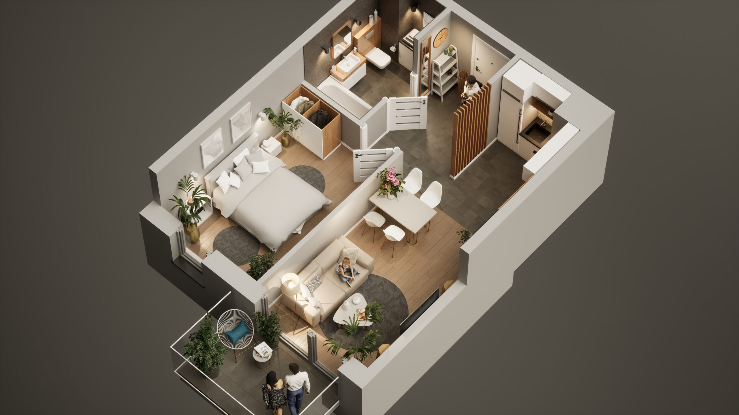 Zadbaliśmy o to, aby spójna koncepcja architektoniczna i dbałość o otoczenie wprost wpływały na komfort życia w mieszkaniach, jak również podczas korzystania z części wspólnych. Zaś dla wszystkich, którzy marzą o wyjątkowych przestrzeniach z tarasami na dachach – powstały penthousy na ostatnich kondygnacjach. To także doskonały punkt wyjścia dla poszukujących alternatywy dla domu – metraże pozwalające na dużą swobodę w aranżacji przestrzeni. Dodatkowo projekt zakłada sprzedaż lokali z funkcją pracowni, spełniając oczekiwania Klientów, którzy chcą mieć prywatną przestrzeń by realizować się zawodowo.